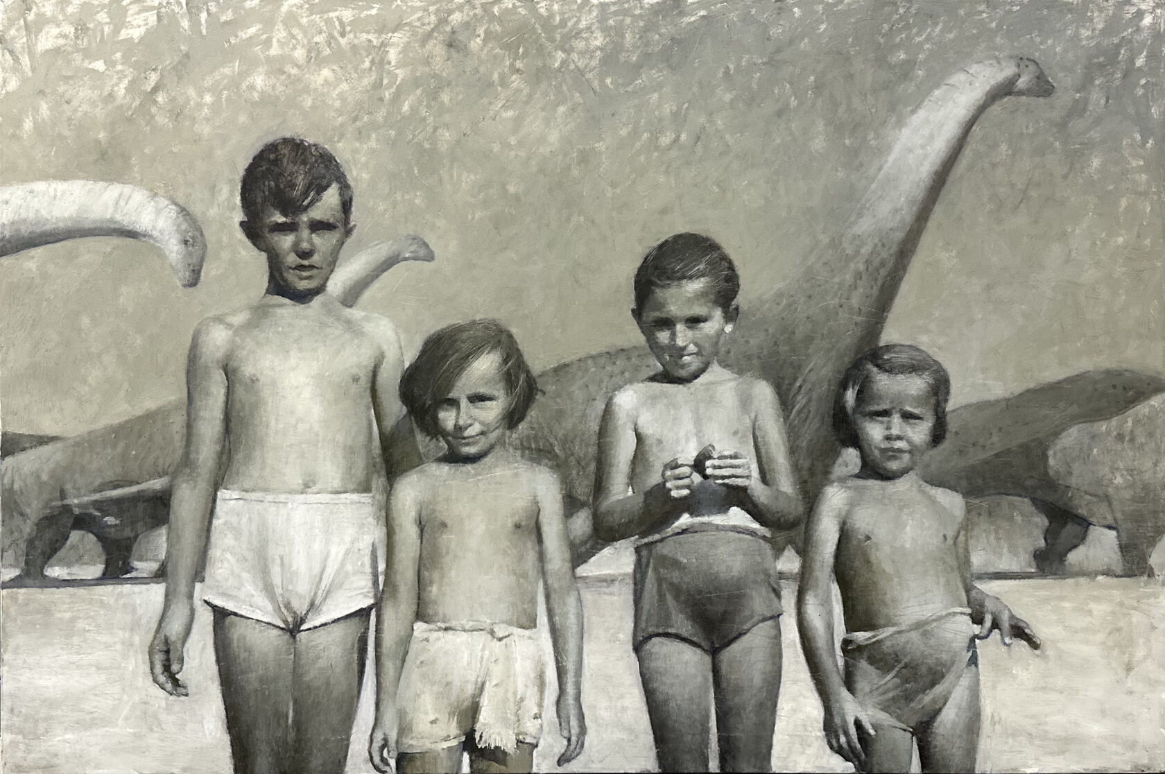В первой части проекта художник обращается к образам из советского прошлого. Важные сюжеты истории нашей страны зафиксированы настолько точно, что даже неподготовленный зритель сможет узнать события и феномены, к которым отсылает автор. Эти образы одним знакомы с детства – самого светлого периода в жизни любого человека, другим – по рассказам бабушек и дедушек, фотографиям, кинофильмам. На душе становится теплее, когда рассматриваешь картины с почти фотографическими изображением и моря, пионерского лагеря, детей в коротких штанишках, наконец, старенького телевизора, где были зафиксированы самые яркие впечатления, будь то первый полет человека в космос или улетающий олимпийский мишка. Зритель почти на физическом уровне ощущает эпоху: узнает атмосферу, детали, считывает особое настроение.