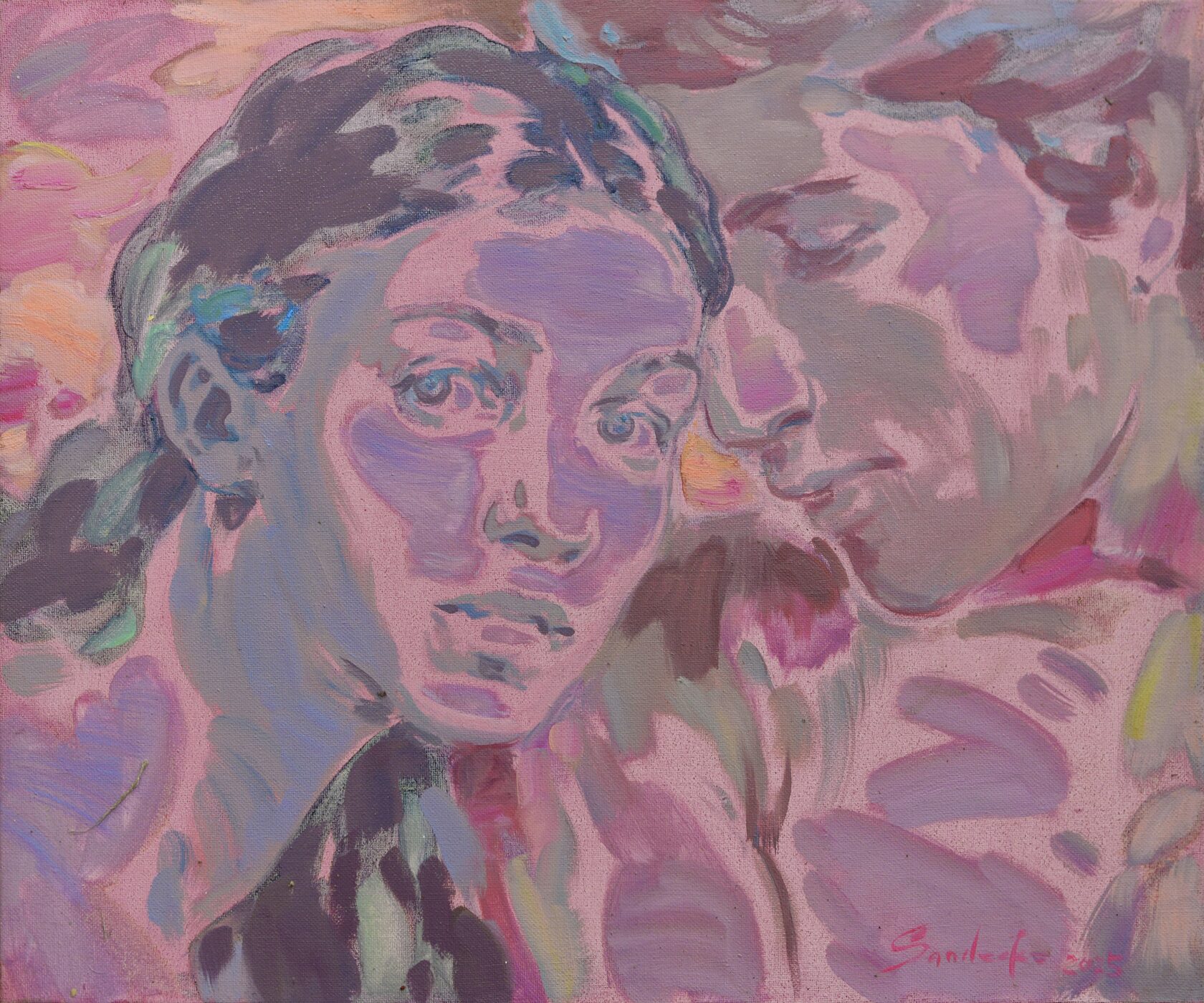 Ксения Сандеско пишет не людей, а персонажей. Они не списаны с натуры и не привязаны к конкретным историям. Они существуют, чтобы нести то, что художница в них заложила: свет, любовь, радость. Её живопись открытая, звонкая и теплая. Мужчина и женщина в её новых работах не сливаются в одно целое, а остаются собой, но между ними всегда чувствуется воздух, наполненный светом.
