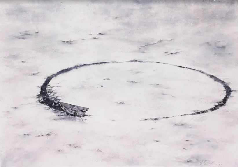 Вглядываясь в его картины/ кадры вы попадаете в пустыню. Это не песчаные барханы, это пустыня души, зимнего пейзажа и индустриального «нечто и ничто». Покрытые и прячущиеся под снегом объекты среды, уходящие в никуда составы и люди, темные деревенские дома, сломанные металлоконструкции, засохший борщевик вдоль дороги и дети в советских шубках и ушанках… ОБРАЗЫ, внутри которых — «целый мир и космос».