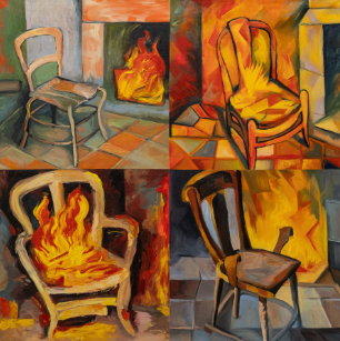 Первая часть юбилейной выставки группы выстроена как классическая отчётная экспозиция, следующая логике CV художников. В экспозицию вошли живописные работы из проектов «Видения звёзд» (2021), «Зиккураты» (2023), «Фантомокартография» (2021), «Нейродадаизм. Падение хулигана с забора» (2023). В своей практике группа разрабатывает новое направление в искусстве, которое авторы обозначают как «карнавальный концептуализм»: