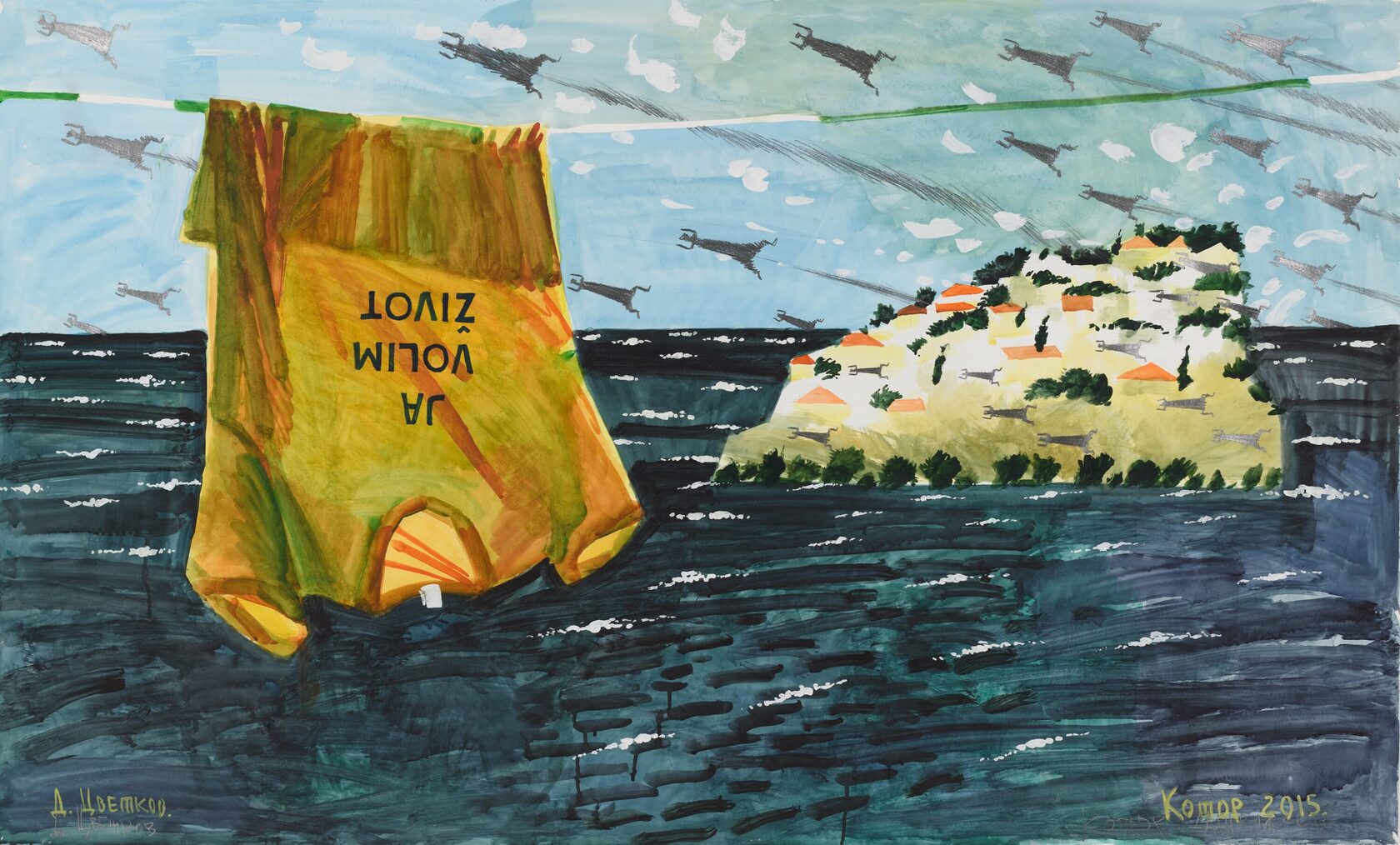 «Я уезжаю из мегаполиса — туда, где в небе парят орлы, утром в воде плещутся дельфины… В тех краях нет инвестиций, Лувра и слова «симулякр», зато есть нечто другое, что зовётся простым и великим словом — Жизнь», – размышляет художник.