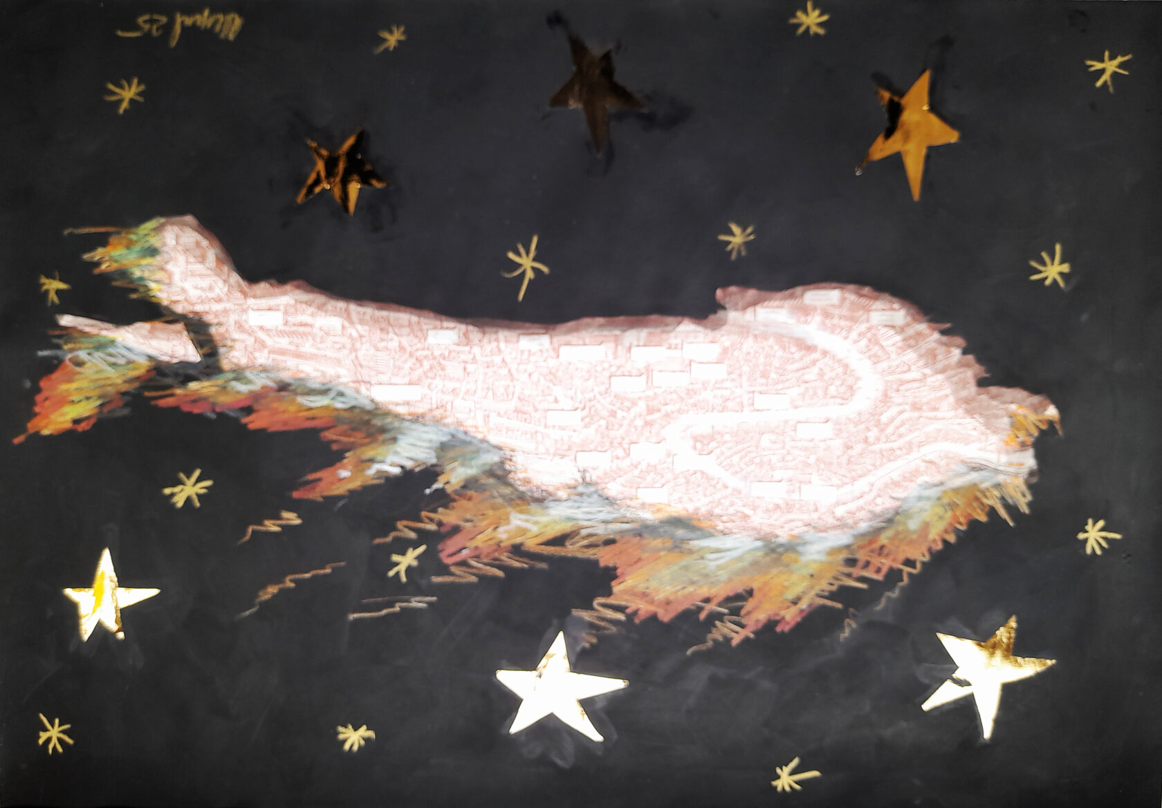 Испытывая особые чувства к «несравненной Венеции», компания KERAMA MARAZZI подарила современным художникам постер, посвященный Венецианской коллекции бренда, с напечатанной на нём картой легендарного города, что возымело живую реакцию и переформатировало многотиражный «мерч» в уникальное произведение искусства. Карта Венеции XVII столетия, изображённая на современной бумаге, синтезировала не только новый социокультурный продукт, но и стала неожиданной платформой, заключающей в себе огромный потенциал прочтения и реализации предельно индивидуального взгляда на мифологизированную «жемчужину Адриатики». Проект выставки изначально не содержал регламентаций и кураторских установок; только формат карты и условности графического изображения Венеции, что открывало перед авторами хорошо освоенное ими пространство «вольного прочтения». В результате появилось нечто новое, воспроизводящее дополненную реальность и вживляющее в застывшую картографию что-то очень личное, уходящее далеко за административные границы конкретного города в области тонкой игры со смыслами и геолокацией.