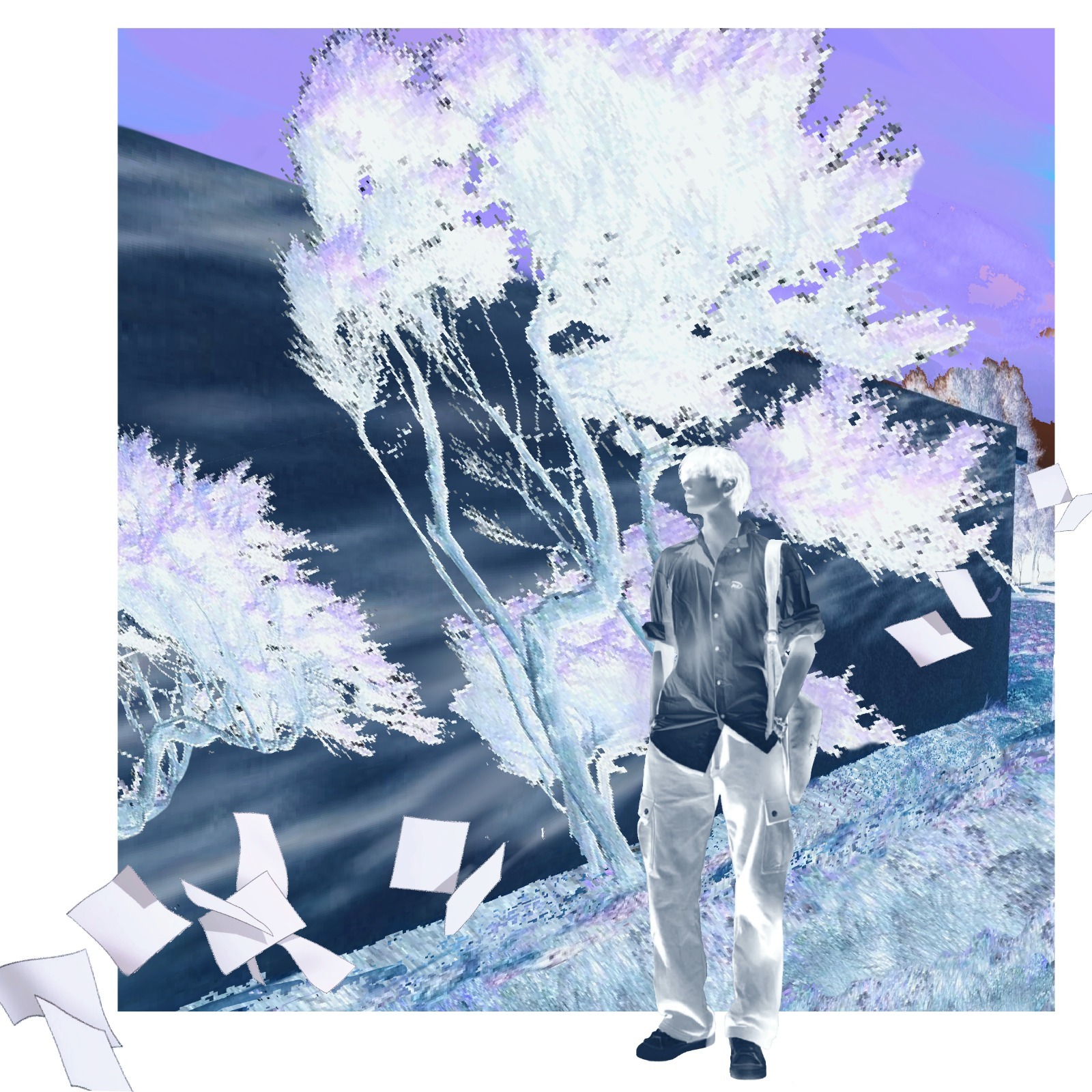 Вероника продолжает серию работ, построенных на моделировании изометрической среды, сознательно нарушая канонические законы композиции и на этот раз подвергая деконструкции не только Пространство, но и Время, которое здесь замедлилось и почти остановилось.